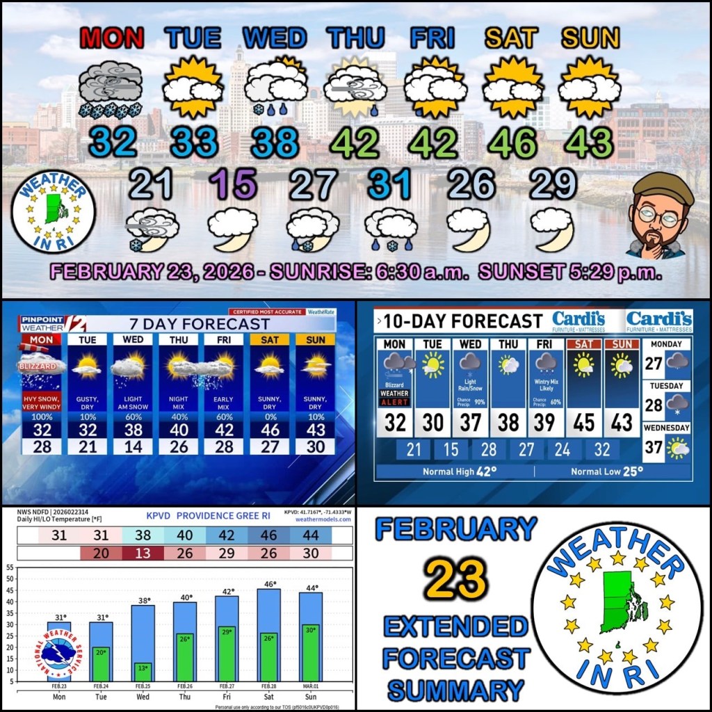 Blizzard Warning continues for all of Rhode Island βοΈ A heavy band of snow is parked on top of us right now βοΈ Travel ban is still in effect π Nothing to do but hunker down π High temps in the lower 30Β°s π‘οΈ Wind gusts 55-70 MPH π¬οΈ More power outages expected π Some locations may exceed 30β of snow when all is said and done π Snow should lighten up later this afternoon π¨οΈ and depart altogether by around early evening π Cold and breezy overnight π΄ Lows around 20Β° π A lighter northwest wind Tuesday βοΈ with mostly sunny skies π€οΈ and highs in the lower 30Β°s π Snow to rain Wednesday π§οΈ Trending milder for end of week π Cautiously optimistic about a nice weekend π #401wx