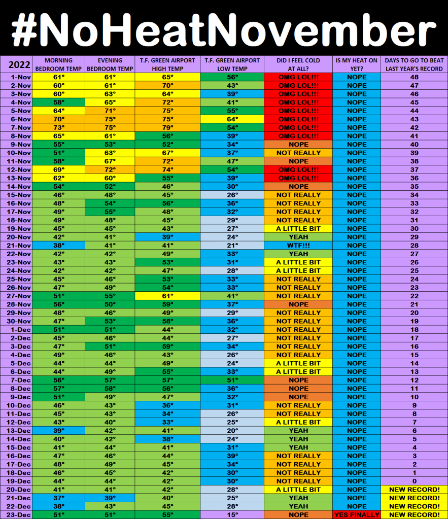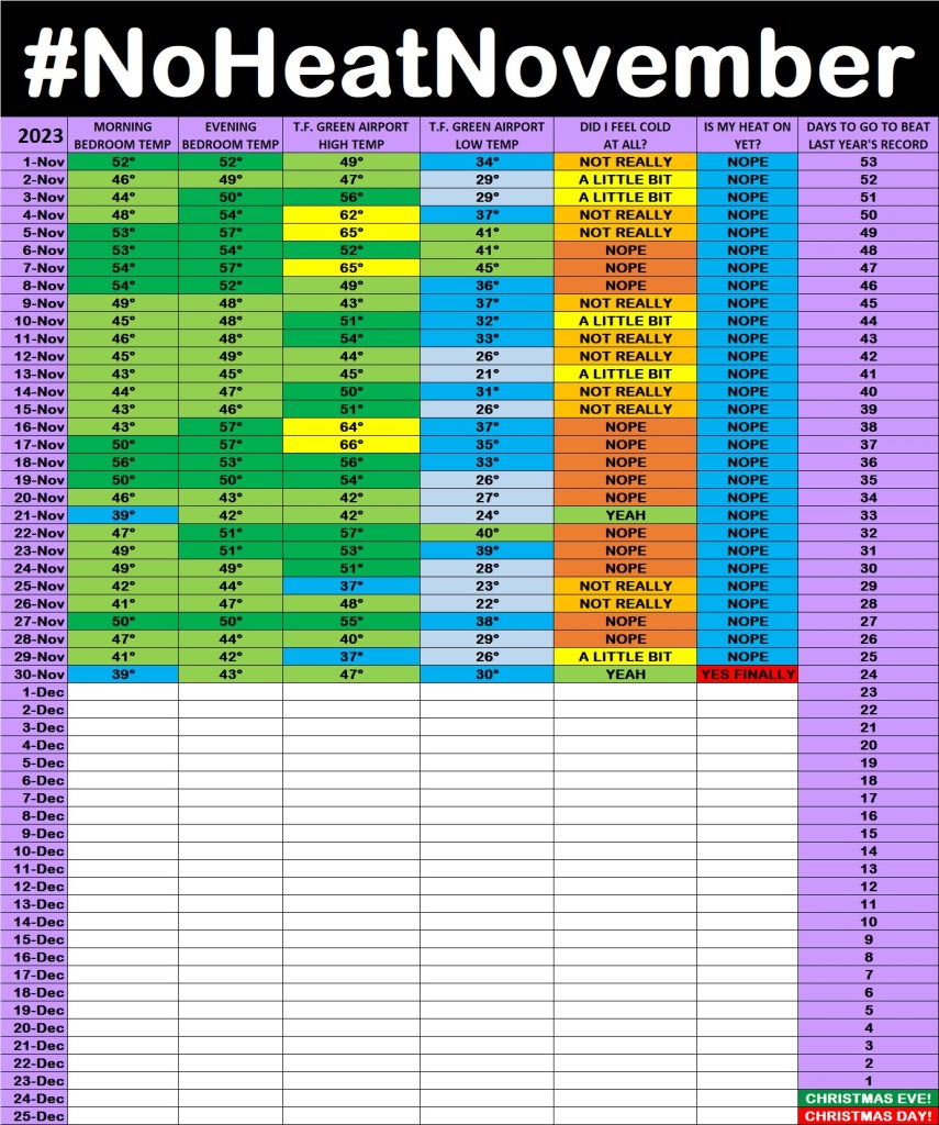 #NoHeatNovember ๐ฅถ NHNPUBLIC๐ Click here to download the#NoHeatNovember Excel template. RESULTS FROM 2021 ๐ ๐ LAST YEARโS NEW RECORD TO BEAT โ๏ธ ๐ 2020 RECORD TO BEAT โ๏ธ Share this: Click to share on X (Opens in new window) X Click to share on Facebook (Opens in new window) Facebook Like Loading...